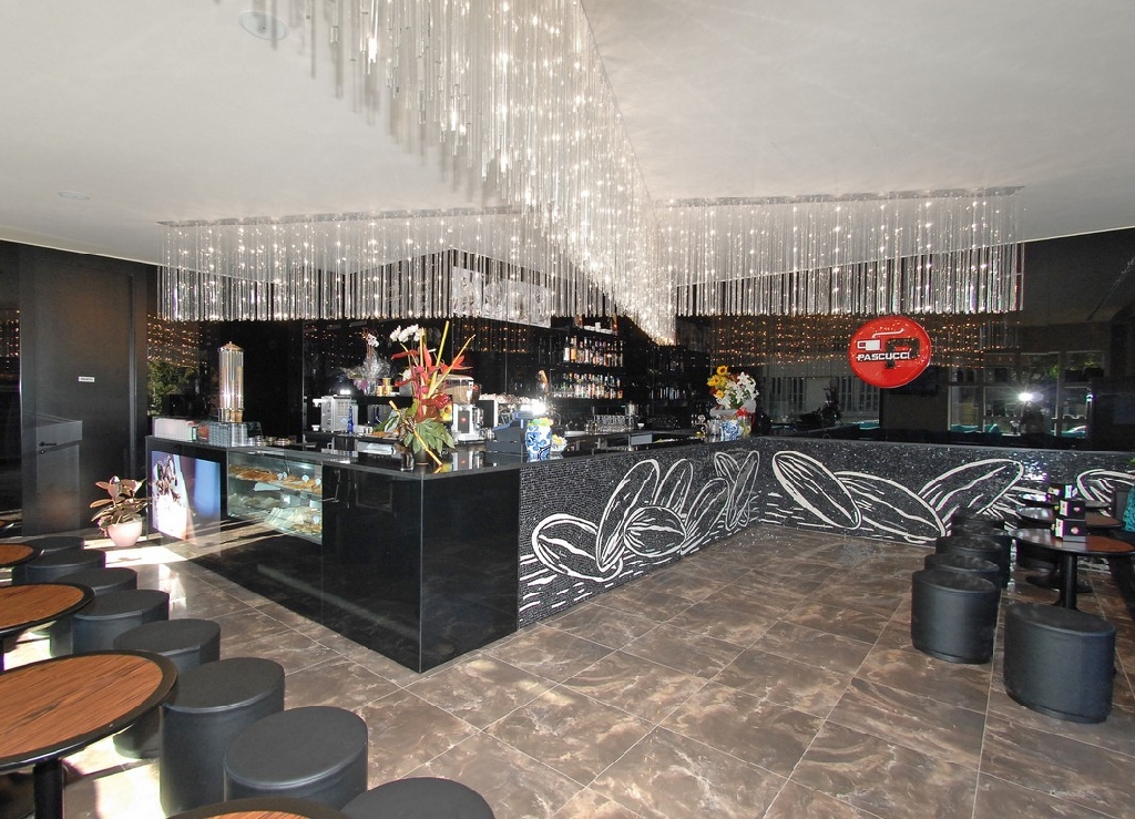 Materiali preziosi e design ricercato conferiscono un ambiente caldo e accogliente per un locale che può avere la funzione di bar, caffetteria ma anche pasticceria e gelateria. Disponibile nella versione Gold.