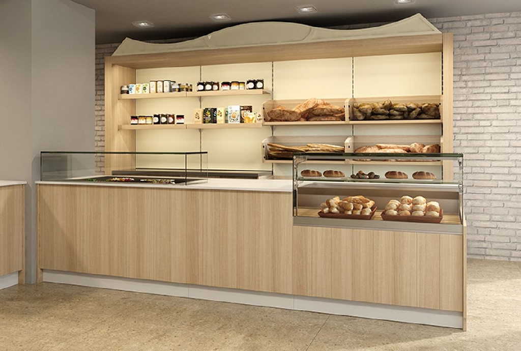 Modello adatto a realizzare arredamenti per panetterie e pizzerie: Il frontale è costituito da un pannello stampato personalizzabile con qualsiasi immagine o foto. Disponibile nelle versioni Bronze, Silver e Gold.